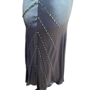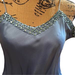 Stunning blue Marc Jacobs dress. Spaghetti straps and Swarovski beading on the side. Silk. No missing beads. Small minute pulls but nothing big to the naked eye.