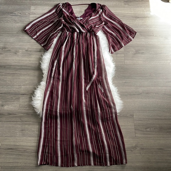 Beautiful long sleeve red wine dress with stripes