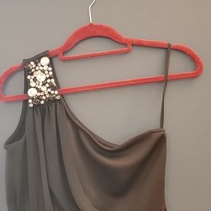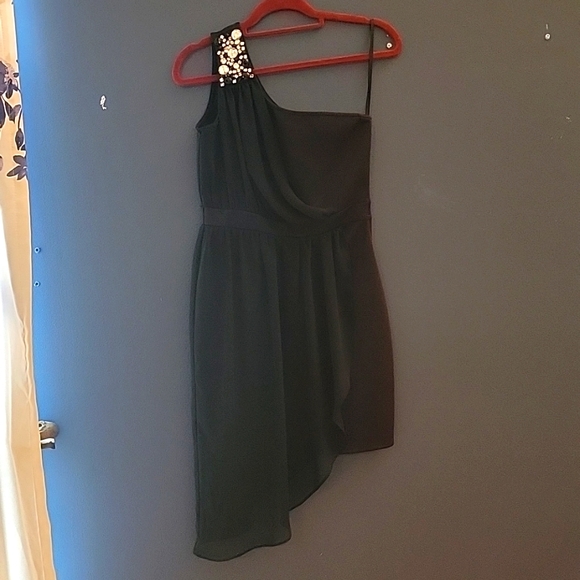 cute black dress. Off one shoulder. rhinestones