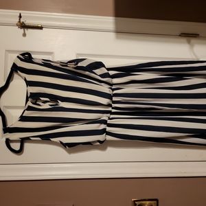 Striped navy blue and white maxi dress with a short lining and split up the sides Lightweight summer dress