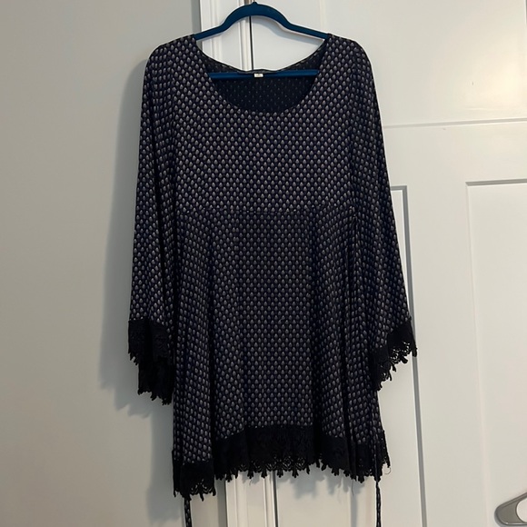 This dress has a tie in the back for a more fitted looked! Bell sleeves with lace for trim. No stains, rips or holes.