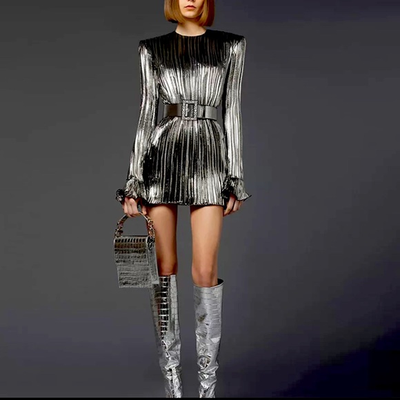 Metallic party dress in style like dolce gabanna, Ana Sui, Cristy Dawn, self-portrait, Prada, Chanel, Alexander Mcqueen and more.