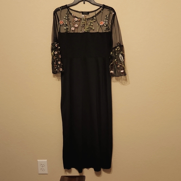 Black maxi dress with sheer embroidery rose flowers
