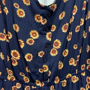 Navy Sunflower Dress🌻 Brand Just Found. Size 3x. Worn Once. Great Condition. Non-functional buttons on front. Cross cross back.