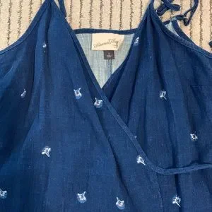 Navy dress with small flower design, soft blue Jean material. Never been worn! Smoke free home!