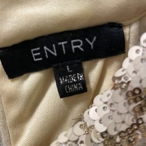 A evening dress with net as a skirt The top is sequins with a back zipper