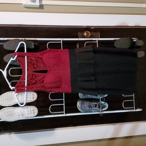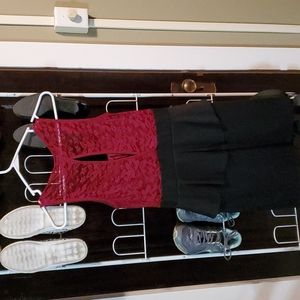 Wine lace top with built in padding ans black layered dress. One piece.