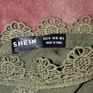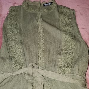 Olive green contrast lace belted dress. Brand new never worn.65% polyester 35% cotton