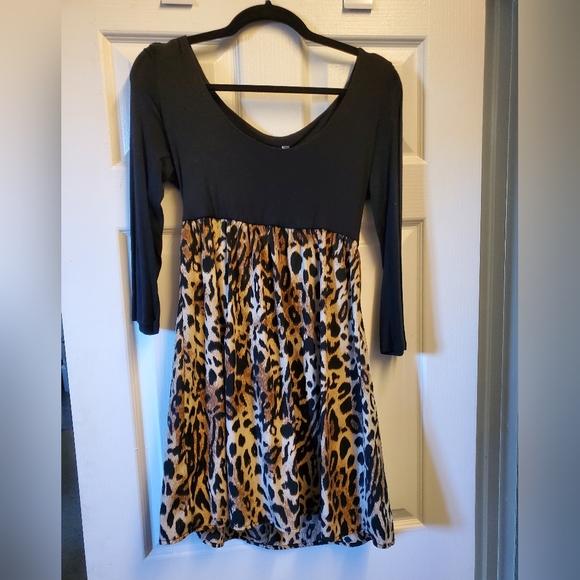 black and print dress. I believe it is women's size large. hasn't been worn in a long time... if ever.