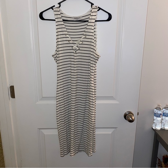 MIDI length striped dress from Charlotte Russe. Top ties and is adjustable. Size medium. Worn once. Great condition!