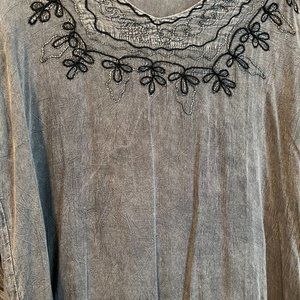 Long sleeve dress by Amanda's Collection. Size 1X. 100% Rayon. 34 in. from shoulder to hem.