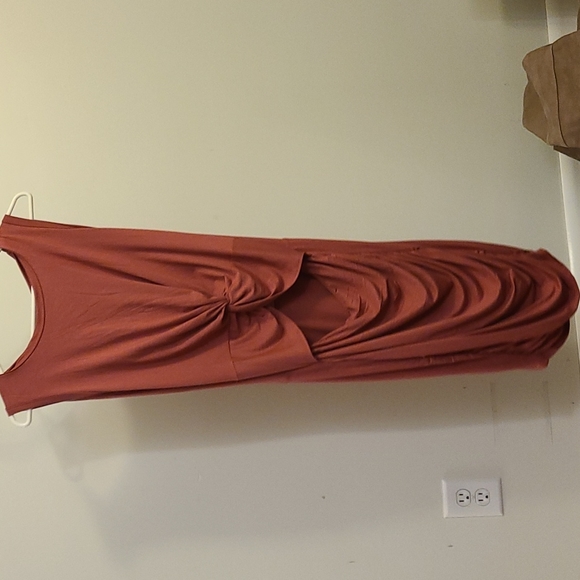 mauve color tank dress with peep hole stomach. this is such a flattering dress and the stomach peep hole is easily covered if wanted.