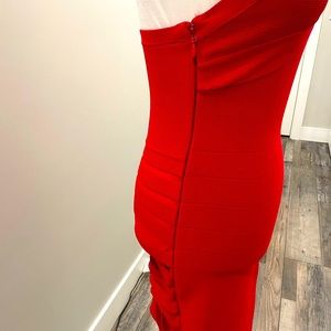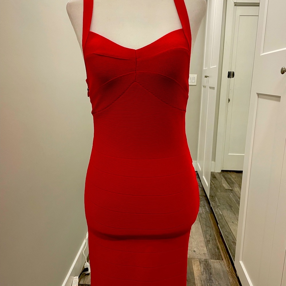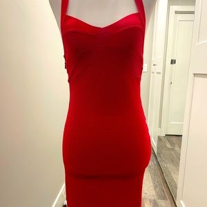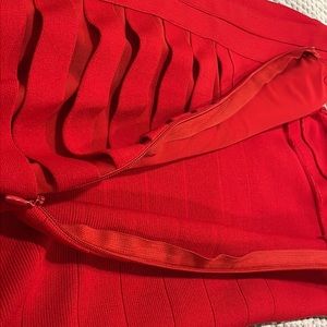 Bodycon dress with sweetheart neckline sheer bottom back paneling with slit horizontal details across the sheer fabric. Racer back style shoulder straps. Side zipper detail. Fabric has little stretch. Length is mid-thigh.