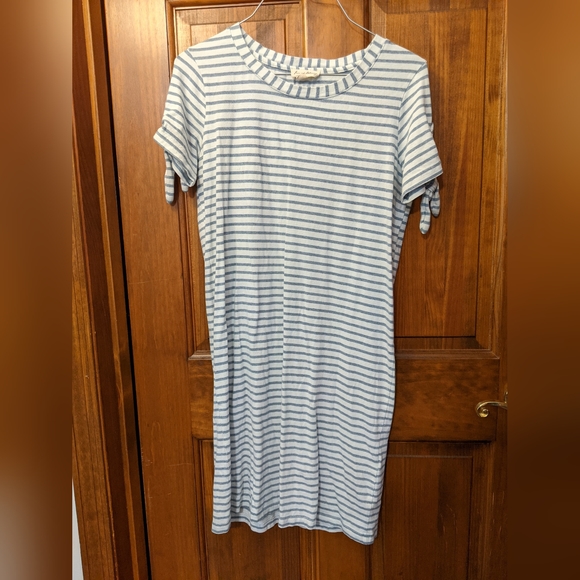 pictures do not do this adorable dress justice! blue & white striped dress with ties on the sleeves. only worn a few times!