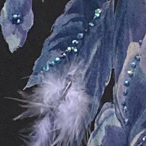 Black Tank Style Dress, with Sequined & Feathered Blue Flowers, Sz XL, No Label. Pull on style. fully lined. Ruffled hem. Back does not have sequins and feathers.