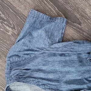 Liz Claiborne button-up Jean dress with belt size medium in great condition and also has POCKETS!!!!