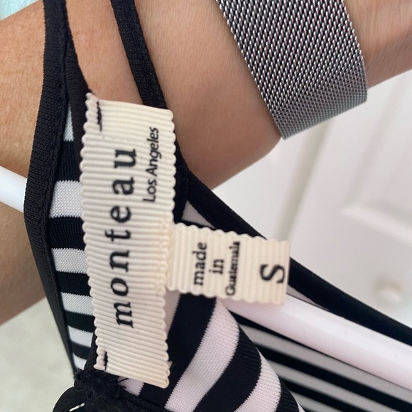 Cute summer dress with a little stretch. Nylon. Black and white stripe. Monteau