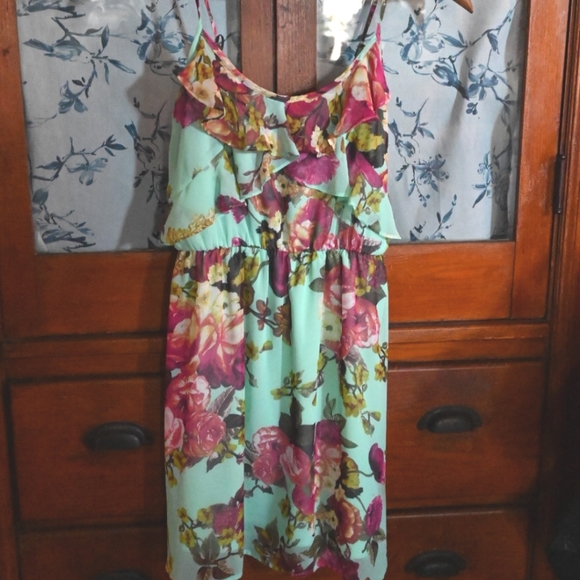 Cute turquoise floral pattern dress.