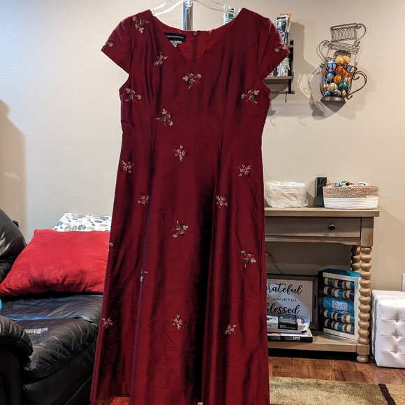100% silk 100% acetate lining bust. 36" waist 33" length from shoulder down 46"