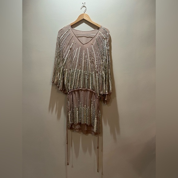 Beautiful short dress perfect for a vacation. Has no tag on it but fits a size medium. It was a gift i received