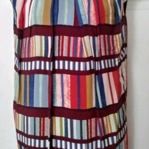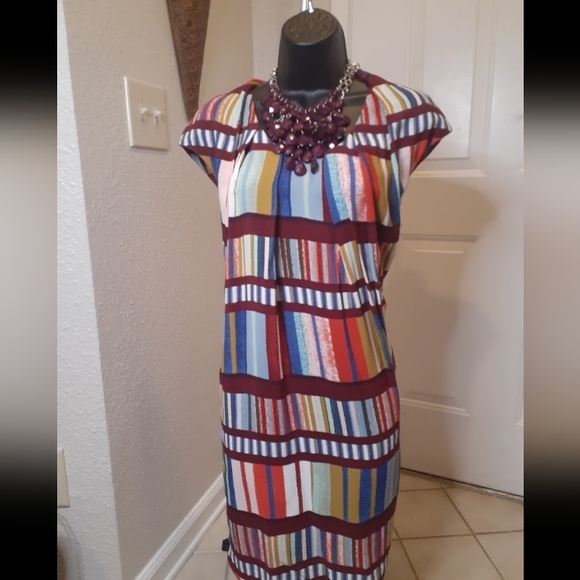 Multicolored rayon dress. Oriental style neck and sleeves.