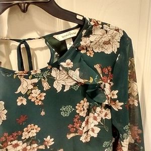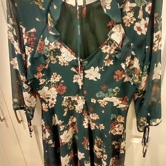 speechless floral keyhole back green with flowers. zips on back 3/4" sleeves with inner lining used but excellent condition