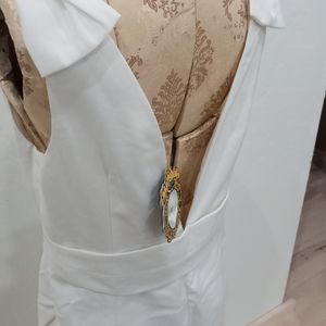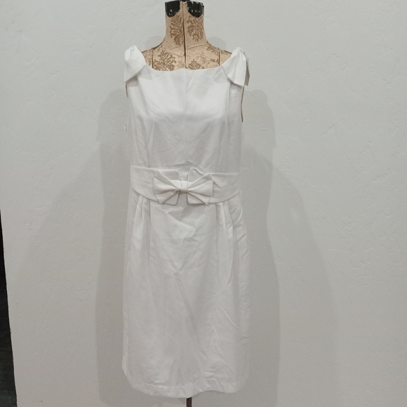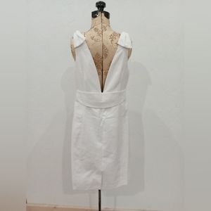 Honeymoon dress. Bows on the shoulder and waist. V shaped back, zip up on the side and double lined.