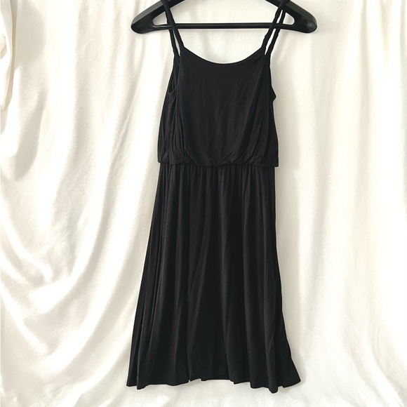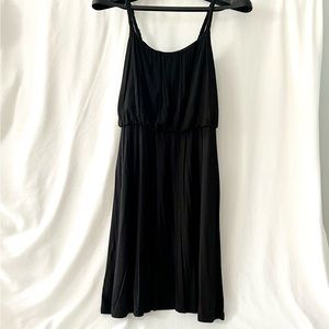 Black summer dress. Hidden elastic waist and rolled thin straps. Rayon, so soft! Lined skirt