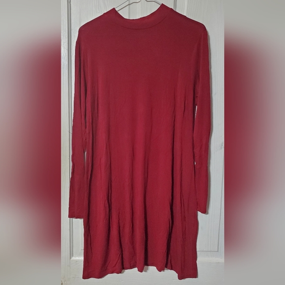 Size Medium Long Sleeve Mock Neck Dress from Entourage Boutique. wine color