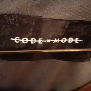 Leather, elastic quarter sleeves ,rounded neck, brown ,tight to flow look.
