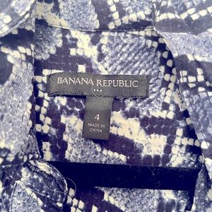 Banana Republic snakeprint dress has two front pockets and buttoned sleeves. Can also be worn long sleeve. Excellent condition!