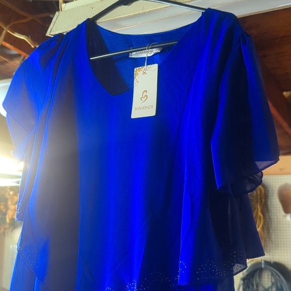 this is a mini dress just above your knees. probably size medium still has the tag on it. nice dress could be worn for dinner. elegant night. even a prom