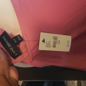 knee length pink dress, with lace on neck v line.