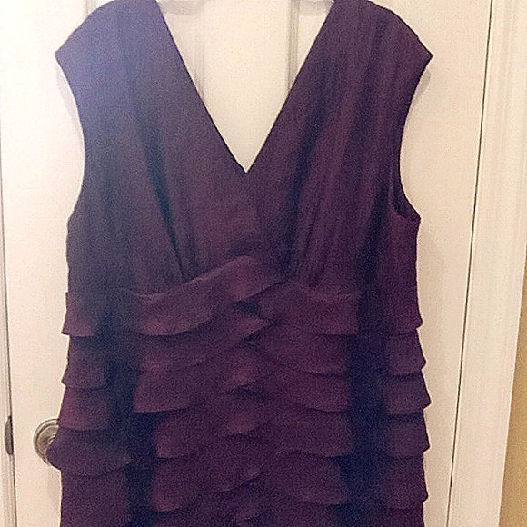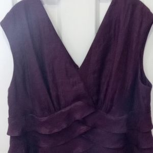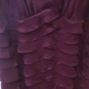 wine colored v neck scalloped body. perfect for night out or wedding. mostly rayon .has a slight wrinkles texture. scallops make this dress very slenderizing.