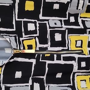 Low neck with gold zipper. 3/4 length sleeve, that fold. Never worn