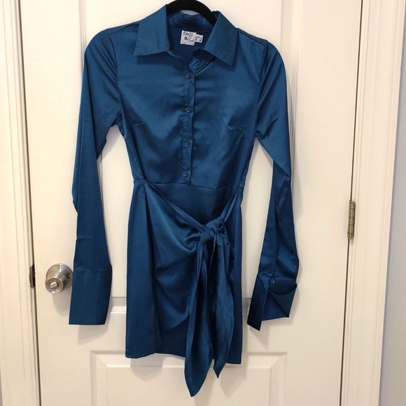 Princess Polly teal silky dress! Super cute! Runs a little small.