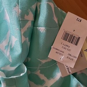 Beautiful sleeveless dress. A beautiful aqua green color. Brand new, never been worn. it is missing the belt. It has a beautiful silver zipper in the back. Perfect condition, no stains no rips no tears, and comes from a non smoking household.