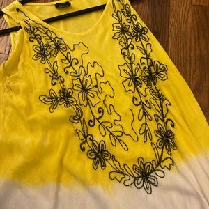 Aline free flow, one size fits most. Beautiful summer colors really light weight so you will be able to wear this in the evening in the daytime. Oh I don’t see a Garman tag but this is made by shore Drive 08 it’s 100% viscose made in India.