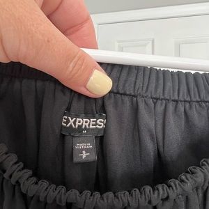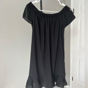 Little black party dress! Lined, ruffle sleeve. Ruched shoulders allow for strapless look. In perfect condition!!!
