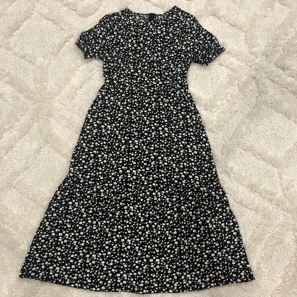 What: dress, color: black/white a little bit of yellow on the flowers, brand: SHEIN, condition: good