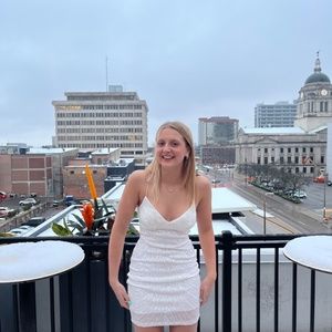 I wore this dress only one night, the dress is not too short but not too long, comfy and pretty. Ideal for prom or semi