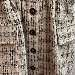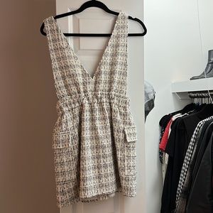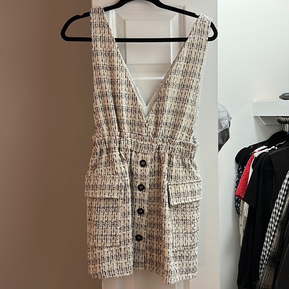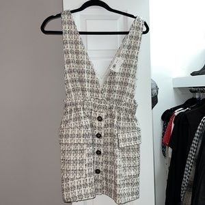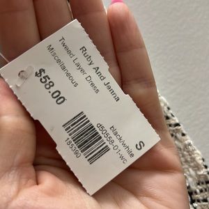 Dress purchased from ruby and Jenna last year. Never worn. New with tags. Colors are ivory/ cream, white, and black. Two pockets. Buttons down the middle. Can be worn over a long sleeve top (white or black)