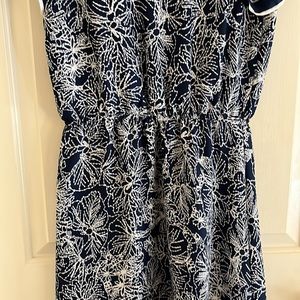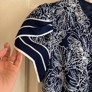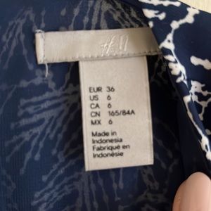 H&M navy and white floral dress. Size 6. This is a mid length not a maxi. Sleeves are super cute with an elastic waist line.