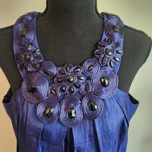 Womens flare dress size medium, blue with faux stone around collar. Button at neck.