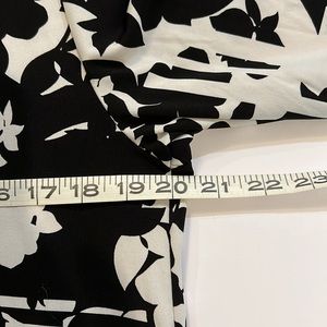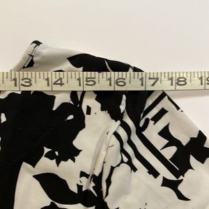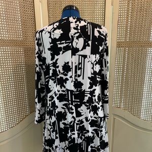 Black and white dress with three-quarter sleeves. EUC. See photos for measurements.