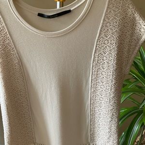 NWOT Casual spring/ summer dress. Sides have a crochet insert. Drop waisted, Cap sleeve. All cotton.