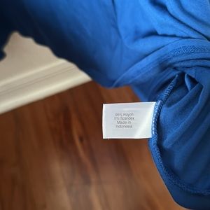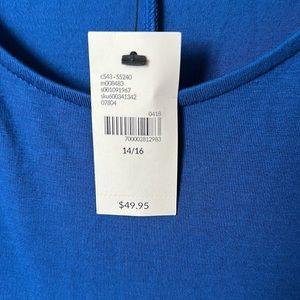 Lane Bryant 40 inch dress length size 14/16 brand nwt blue in color ruffle flare sleeves 95% Rayon, 5% Spandex.