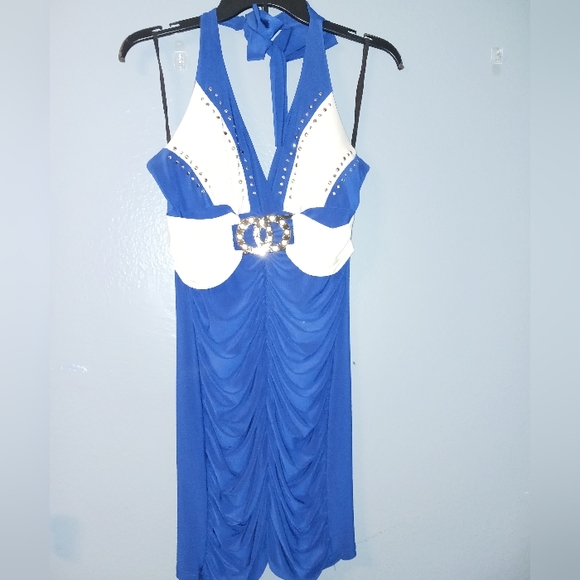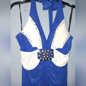 mini blue nd white dress