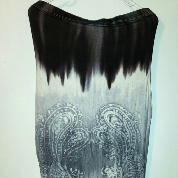 Black and gray halter dress.