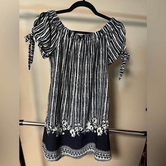 Off the shoulder floral striped dress. Worn once. Flowy and comforts me